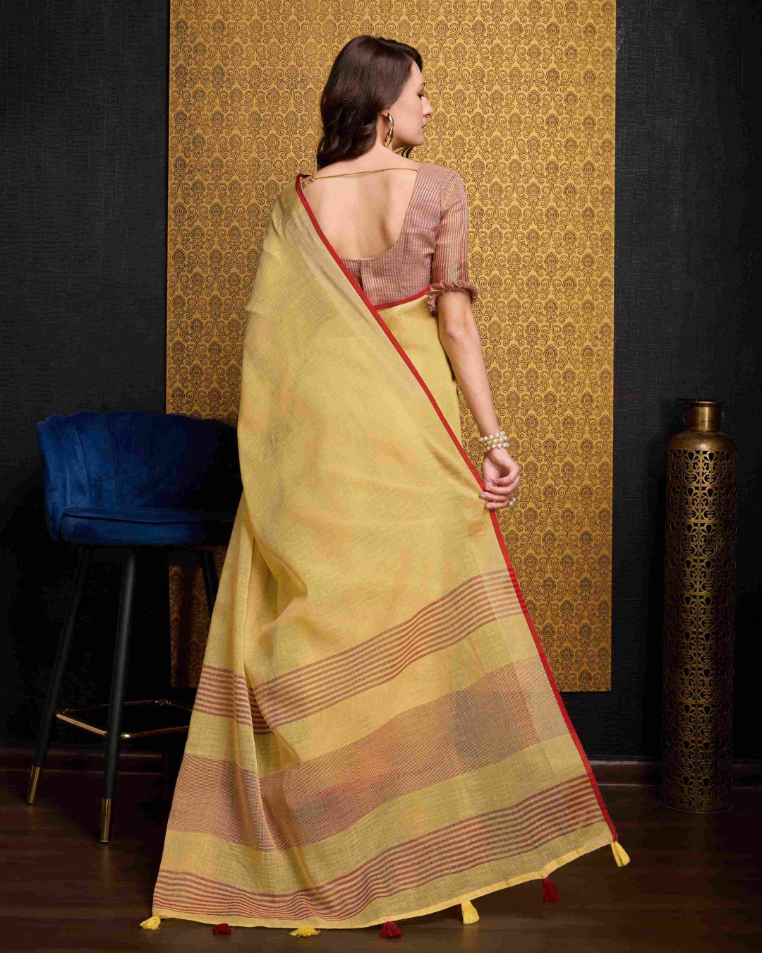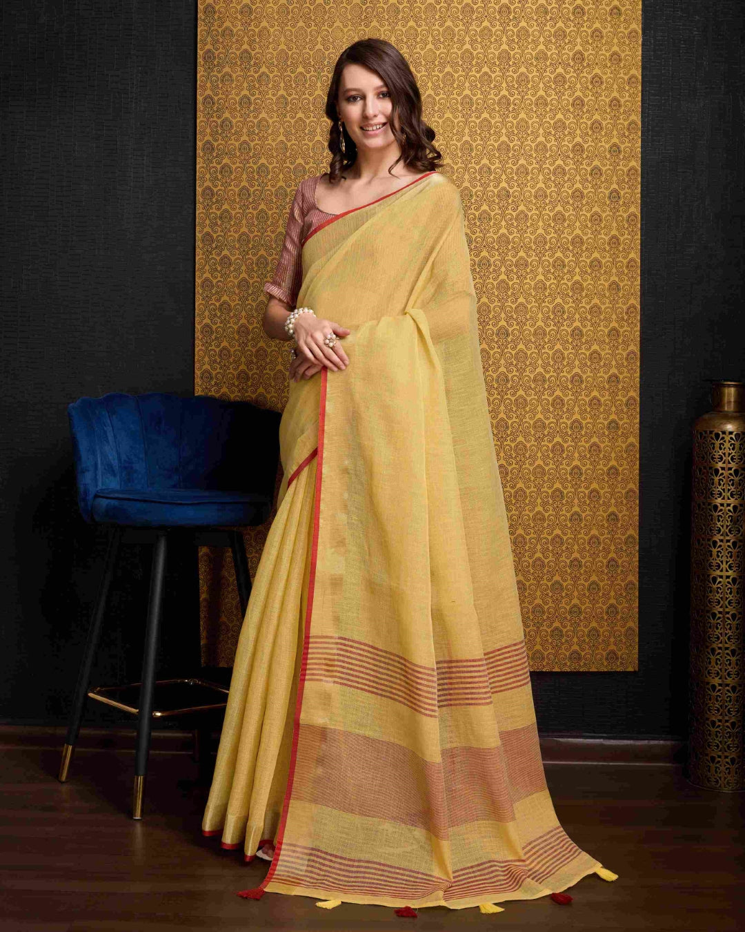 Yellow Elegant Solid Saree with Zari Border – Timeless Grace