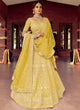 Yellow Embroidered Organza Semi Stitched Lehenga