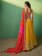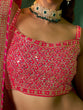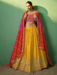 Add light to the celebration called life beaming in this lehenga, choli and dupatta set.
