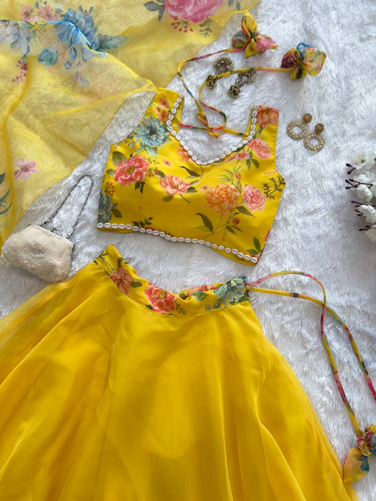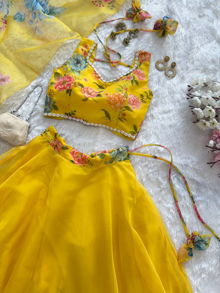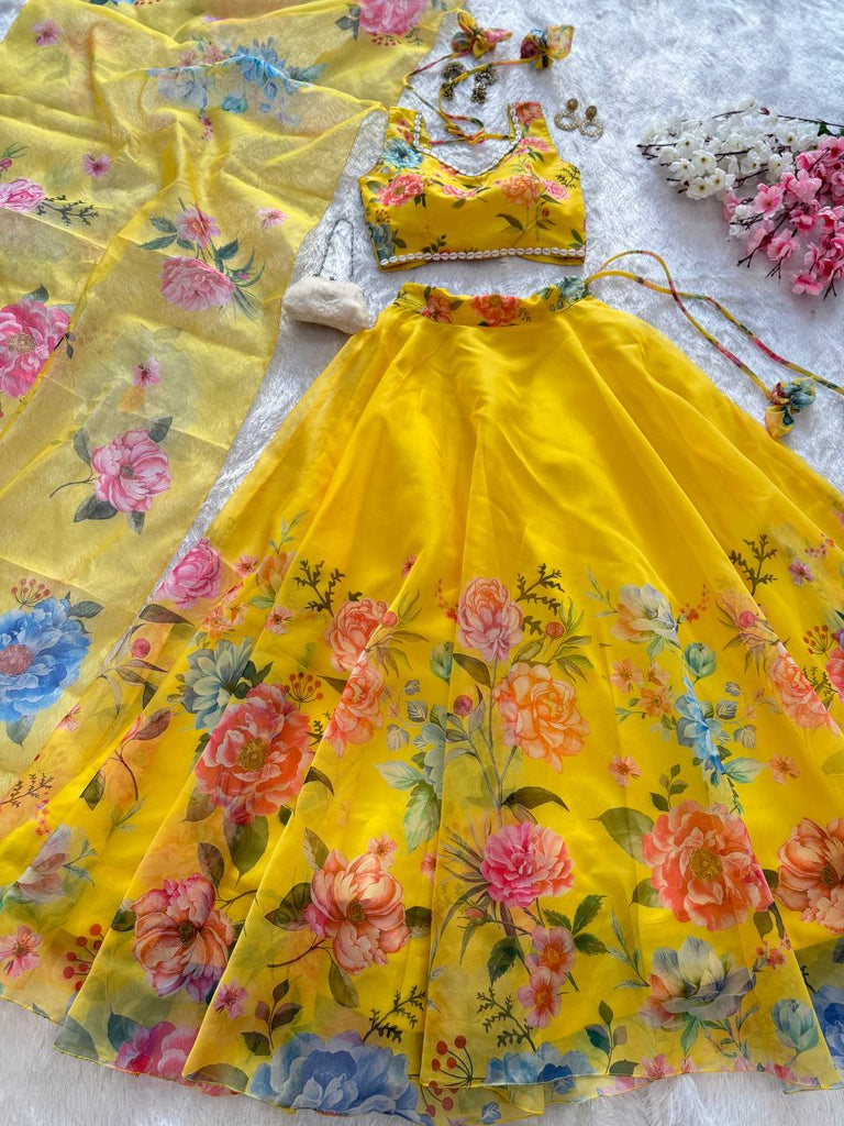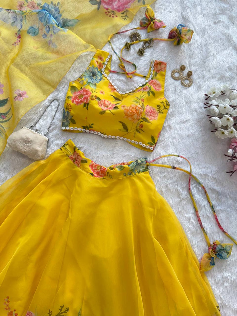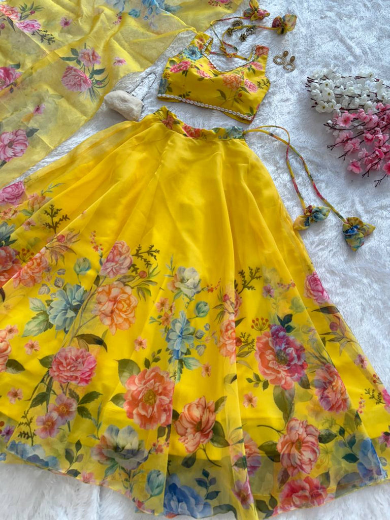 Yellow Exclusive Floral printed Elegance Lehenga Set