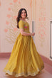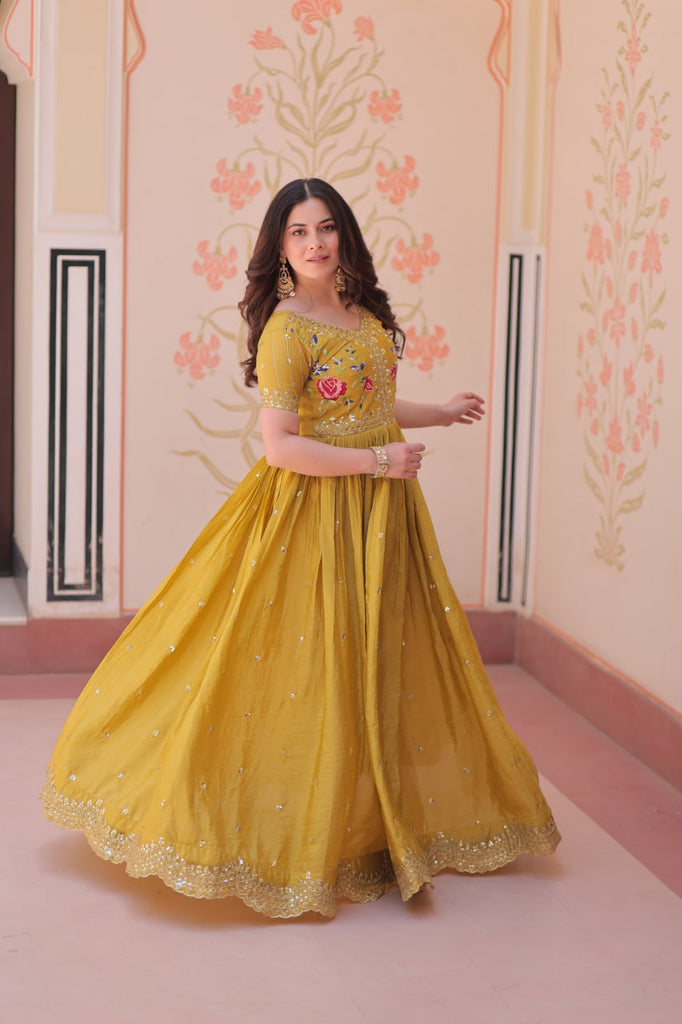 Yellow Gold Crush Gown with Multicolor Thread Embroidery & Sequin Zari Work
