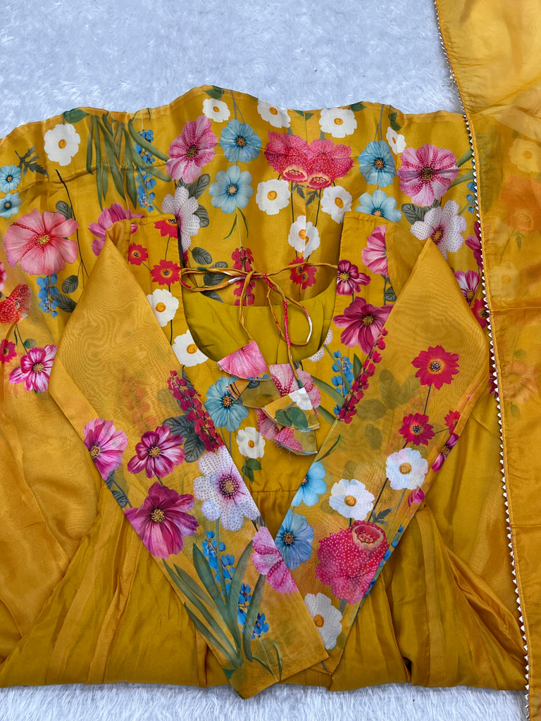 Yellow Graceful Pure Organza Silk Anarkali Suit with Gota Patti Dupatta