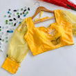 Yellow Hand-Painted Organza Silk Blouse with Embroidery Accents