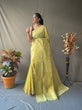 The Yellow Saree in Linen Silk is a beautiful and elegant choice for various occasions, including weddings, parties, and casual events. The use of Linen Silk fabric with Jaal weaves all over the body of the saree adds a touch of sophistication and elegance to the overall design.