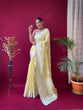 Yellow Saree in Pure Linen Lucknowi