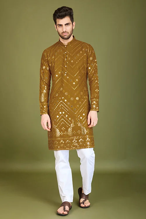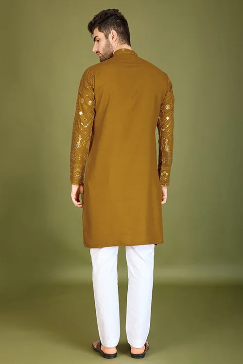 This Designer Piece Embodies the Perfect Blend of Traditional Aesthetics and Modern Comfort, Making It an Essential Addition to Any Man's Ethnic Wardrobe.viscose Rayon is Renowned for Its Yellow Viscose Rayon Men's Kurta , Ensuring You Remain Comfortable Throughout the Day.